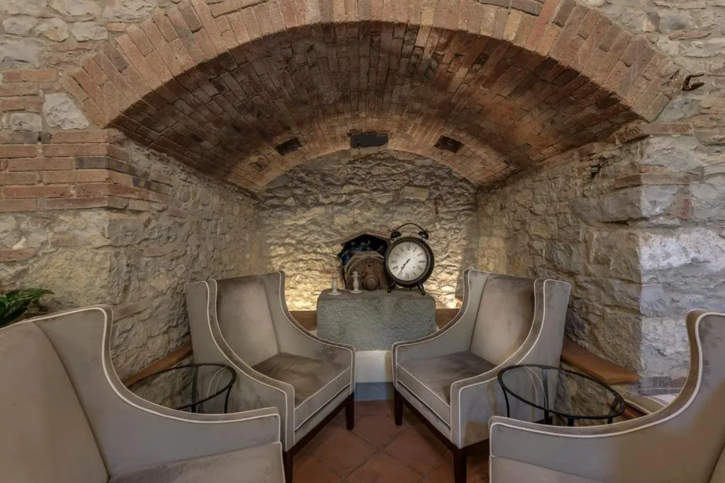 As a destination curated for travelers seeking assurance in their hotel choices, we are delighted to present this gem nestled amidst the rolling Tuscan hills. The panoramic views set the stage for an experience that is both tranquil and invigorating, with outdoor pools and patios that invite you to bask in the serene landscape. For cooler days, the hotel's welcoming lobby, with its traditional exposed beams and terracotta floors, becomes a cozy retreat to enjoy local wines.