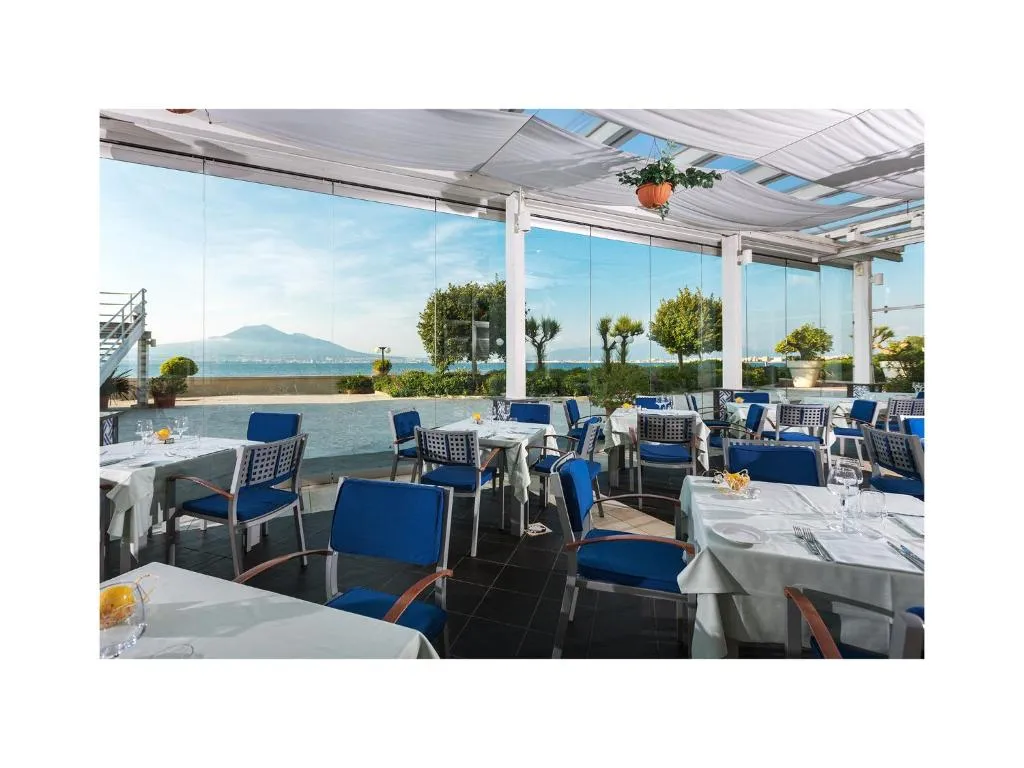 Geniet van de exclusieve flair van ons privéstrand, waar de azuurblauwe horizon elegant wordt omlijst door de grootsheid van de Vesuvius. Blijf verbonden met de wereld of koppel volledig los, de keuze is aan u met onze gratis Wi-Fi-service. Perfect gepositioneerd tussen de levendige Golf van Napels en de charme van het Sorrentijnse Schiereiland, ons hotel is uw toegangspoort tot een onvergetelijke Italiaanse ontsnapping.